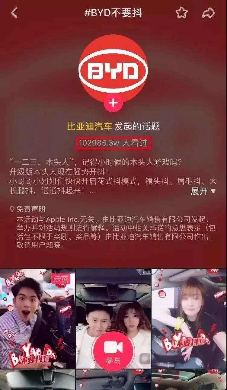 这则“BYD不要抖”抖音挑战赛,是比亚迪迈向新未来的开端,不仅让更多人看到了比亚迪未来的新主张和生命力;也用事实向我们证明了,品牌玩抖音营销,反套路才是一种聪明的套路。